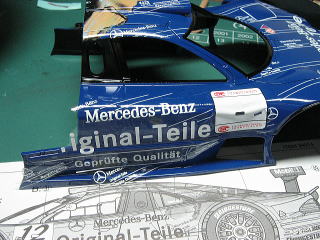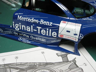 右の画像は、デカールを置いてだいたいの位置まで合わせた状態です。
