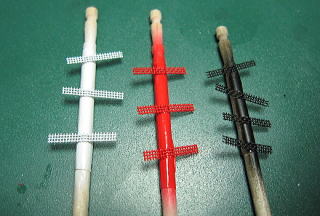 ●白いネットは、切り取っておいたデカールを貼りつけます。